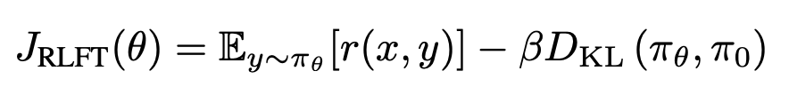 RLFT는 인간 피드백이나 사전에 정의된 classifiers에 따라서 보상을 부여하는 구조로, 이 보상을 최대화하는 식으로 LLM을 파인튜닝한다. 보상 r(x,y)는 바람직한 반응에는 높은 값을, 나쁜 반응에는 낮은 값을 할당하며 파인튜닝된 LLM을 학습시킨다. 가장 많이 사용하는 강화학습을 활용한 LLM 파인튜닝 프레임워크는 KL-정규화 RL이다. 이는 파인 튜닝된 LLM에 KL 패널티를 부여하여 데이스 모델로부터 너무 멀어지지 않도록 한다. (수식에서 빼는 부분) 이는 강화학습의 보상을 최대화 하려나 원래 모델의 분표가 망가지는 (distribution collapse)일을 방지한다. RLFT에서 중요한 것은 높은 퀄리티의 보상 신호이다. 그러나 인간의 피드백을 모델을 학습시킬 수 있을 만큼 충분히 모으는 것은 비용이 많이 드는 일이고, 이는 오픈 소스 모델이 강화학습 기법을 학습에 도입하는 것을 망설이게 만든다.